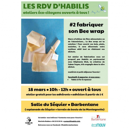 Fabrication de BEE WRAP pour limiter nos usages de film alimentaire plastique dans nos pratiques du quotidien - Atelier réalisé en partenariat avec Stephanie DICK de l'association Ecomouv.