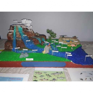 Les rivières et zones humides (dès 6 ans) : découvrir le cycle de l'eau et la définition d'un bassin versant à l'aide d'une maquette puis création d'un réseau trophique de la biodiversité d'une rivière avec des photos et des flèches (1h30).